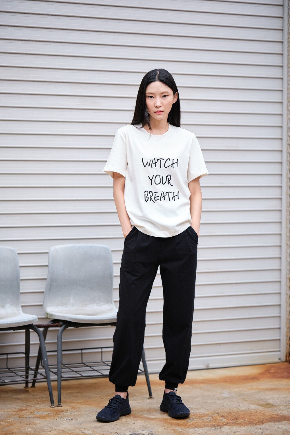 주나코 팬츠는 허리에 밴드처리 되어 있어 허리부분을 잘 잡아줍니다.