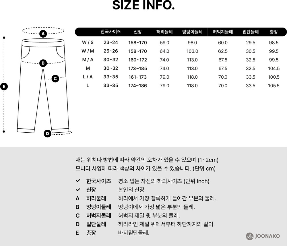 허리 사이즈를 고르는 가장 좋은 방법은 평소 입으시는 '한국사이즈' 참고 하시고 선택 하시면 됩니다.