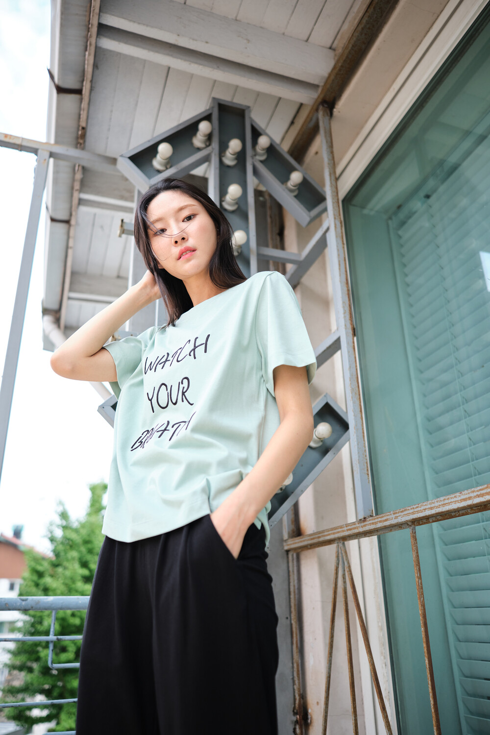 여유있는 기본핏으로 피부에 닿는 느낌이 좋고 흐르는 느낌의 소재가 바디라인을 아름답게 연출합니다.
