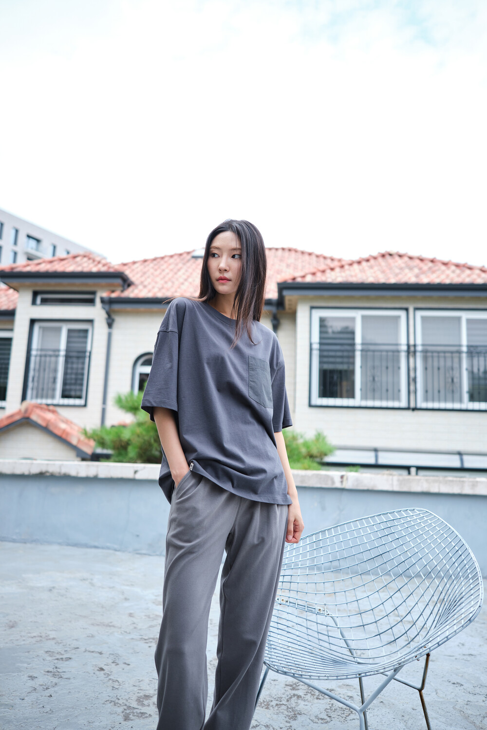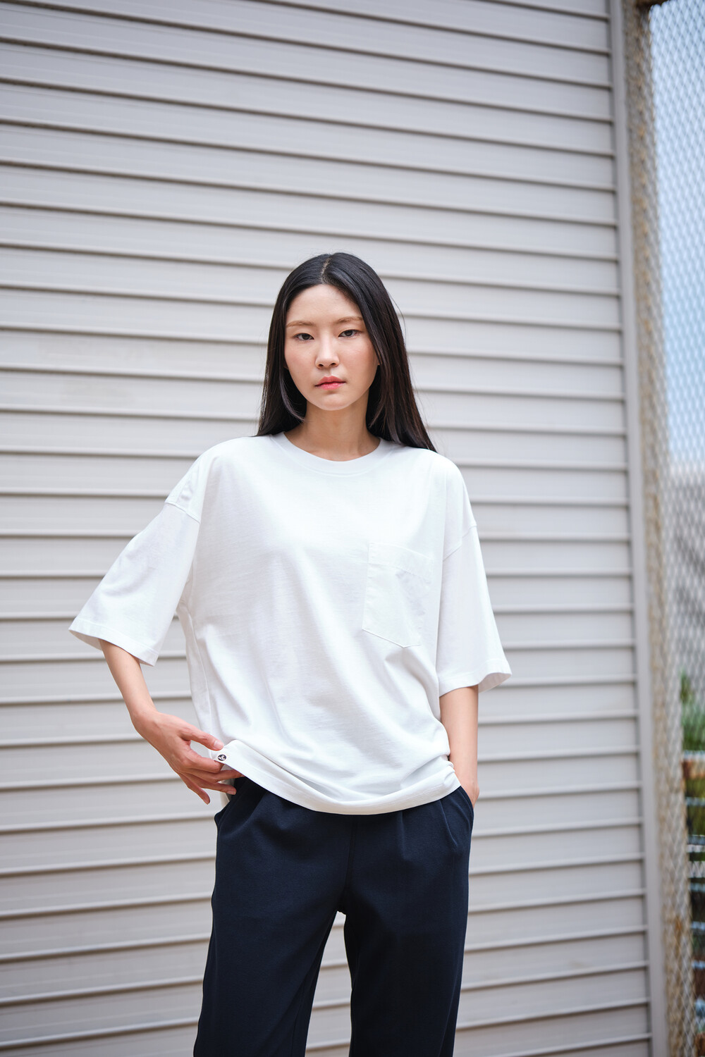 부드럽고 시원한 촉감을 자랑하는 라운드넥 라인의 티셔츠 입니다.