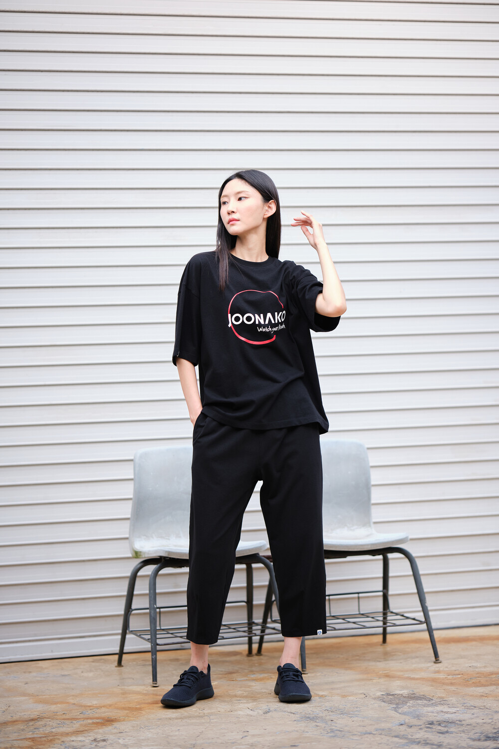 주나코 글자 로고와 함께 써클을 이용해 스타일리쉬하게 디자인한 오가닉 면100% 맨투맨 티셔츠입니다.어깨가 드롭되는 스타일의 루즈핏 크루넥 티셔츠로써 주나코의 다양한 하의들과 매치하여 트렌디한 스타일링을 즐겨보세요.